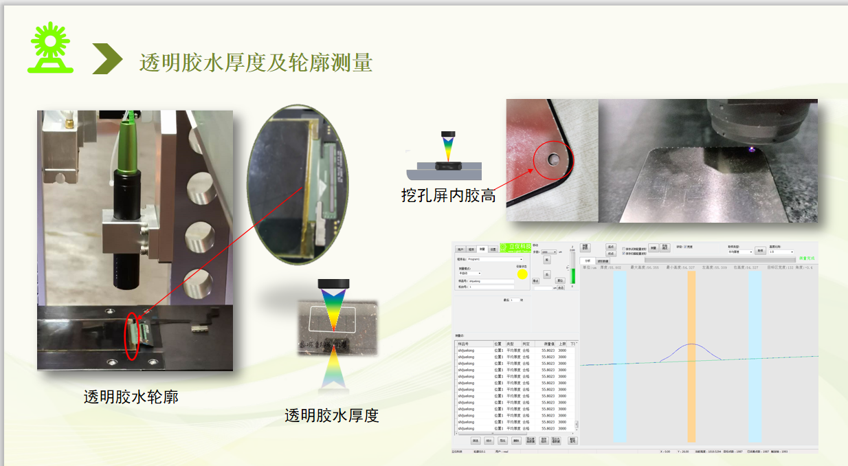 點膠引導、膠水測高側(cè)厚、液滴、液位、透明涂層厚度測量